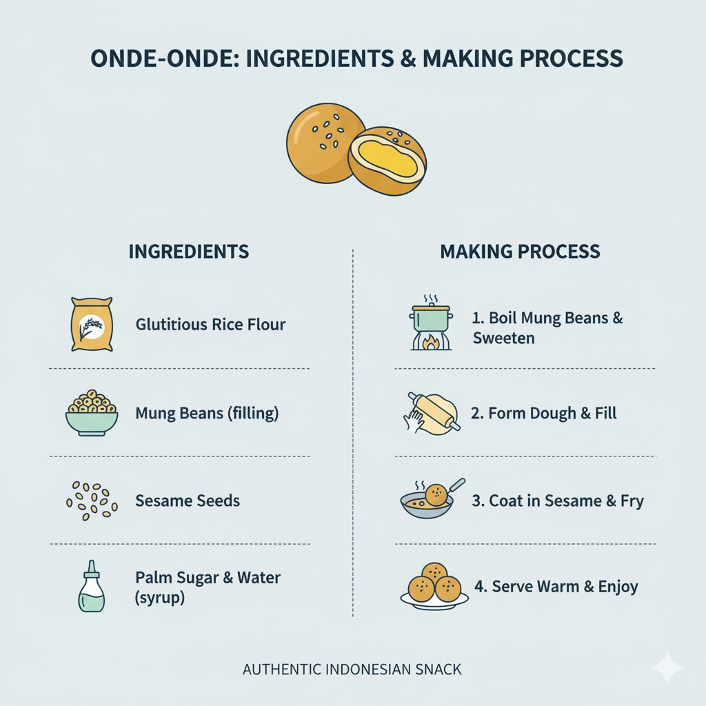 Onde-onde berasal dari pengaruh kuliner Tionghoa, dikenal juga dengan nama “Jian Dui” di China. Namun di Indonesia, Klepon telah bertransformasi menjadi jajanan pasar ikonik yang mudah ditemukan dari warung kaki lima hingga toko kue modern.